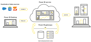 The Power BI Desktop is an easy to use data definition and report authoring tool. You can connect to data from disparate databases, files, and web services using visual tools. The Power BI service allows you to publish reports securely throughout your organization and set up automatic data refresh, so everyone has the latest information. Power BI gives you the tools to unify your organization’s data, whether in the cloud or on-premises. Using the Power BI gateways, you can connect SQL Server databases, Analysis Services models, and many other data sources to your dashboards. If you already have reporting portals or applications, you can embed Power BI reports and dashboards in those existing applications.